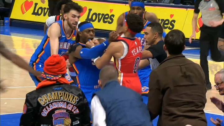 比赛最后一攻,费尔斯与多尔特纠缠互喷,在终场哨响后,多尔特和费尔斯爆发冲突,两人相互拉拽衣领引发大规模冲突,两人谁也不撒手,锡安、萨迪克-贝、霍姆格伦等球员都冲过来劝架,亚历山大的惊讶表情十分抢镜,现场乱作一团,所幸未演变为互殴事件。