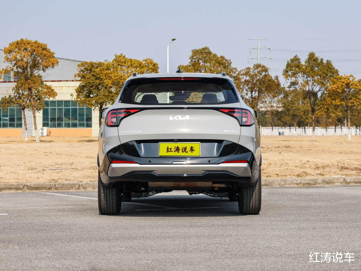 新款起亚狮铂拓界的尾部视觉重心偏高,尾灯内部结构做了重新设计,灯组之间应用黑色装饰板,形成贯穿式效果,但中间部分是不能点亮的,黑色后包围面积大,增强了该车的厚重感。