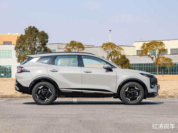 新款起亚狮铂拓界的车身轮廓延续现款车型的风格,上扬的侧窗、间断式双腰线以及黑色轮眉等,营造出一定的运动感,并且2.0T版本的车顶、外后视镜都做了黑色处理,轮眉为亮黑色材质,轮毂样式与1.5T版本不一样。