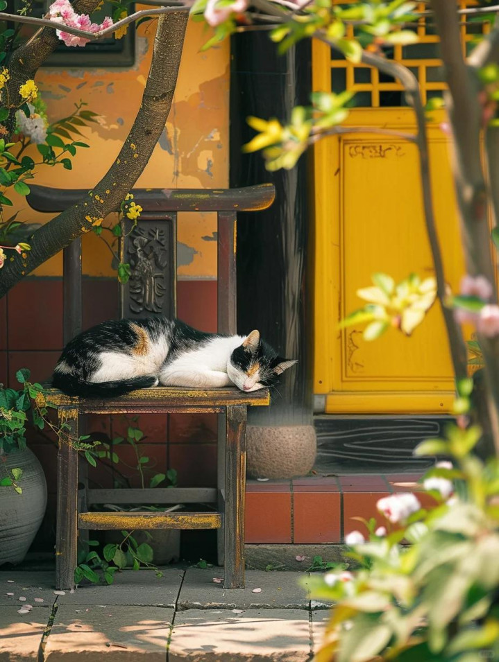 最舒服是黄昏。夕阳把人影拉得老长,浇完花的水管还在滴答,猫蜷在台阶上打盹。