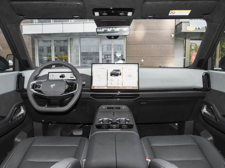 进入车内,内饰采用环抱式布局,兼顾硬派格调与豪华质感,中控台向驾驶员一侧倾斜,方便驾驶时操作,整体风格简约大气,同时融入了大量实用设计。配备70英寸AR-HUD抬头显示、双12.3英寸双联屏,搭载高通骁龙8255芯片,系统响应流畅,支持OTA在线升级、语音交互等功能。接近3米的轴距带来宽敞的驾乘空间,身高180cm的乘客坐在驾驶位,调好坐姿后头部仍有一拳半余量;后排腿部空间可达两拳以上,后排座椅支持靠背角度调节,乘坐感受很舒适。